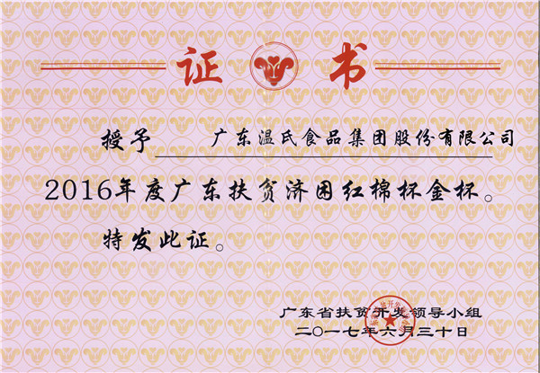 2016年度广东扶贫济困红棉杯金杯
