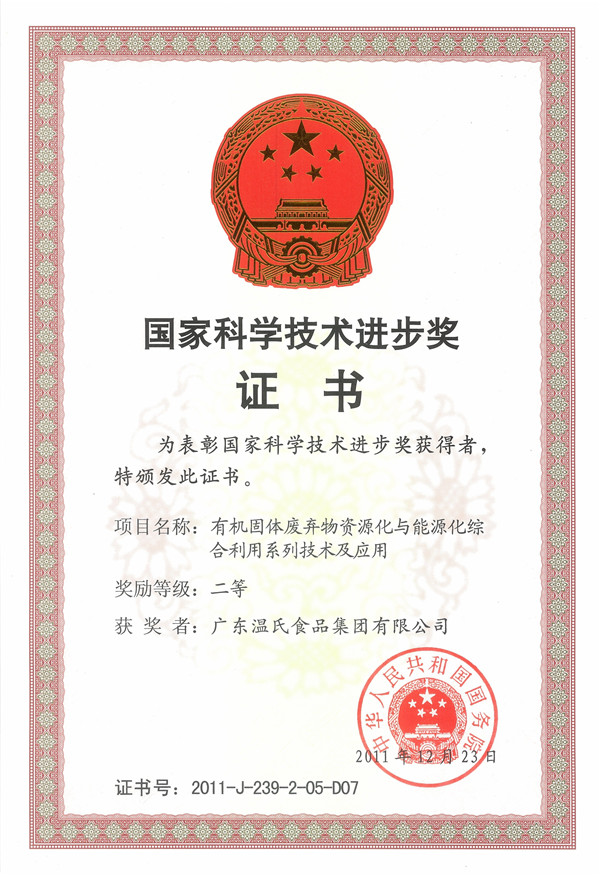 国家科学手艺前进奖二等奖-尊龙官方集团科技项目《有机固体放弃物资源化与能源化综合使用系列手艺及应用》