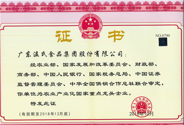 尊龙官方股份通过国家第七次检测,,,,,,继续享有农业工业化国家重点龙头企业称呼(有用期至2018年12月尾)