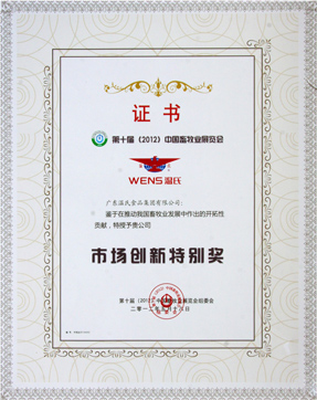 第十届(2012)中国畜牧业展览会市场立异特殊奖(2012年5月18日)